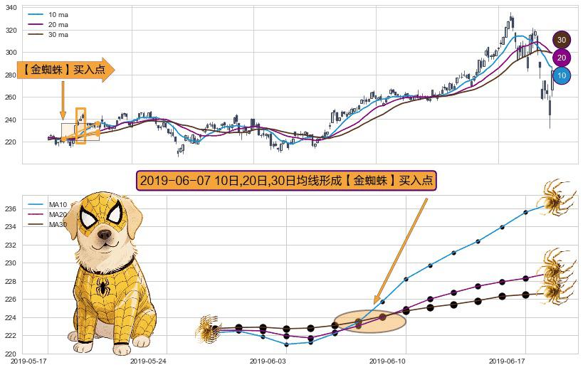 ⚀ 2019-06-07日显现 10日-20日-30日均线 【金蜘蛛】买入点 看多信号,后市看涨,买入