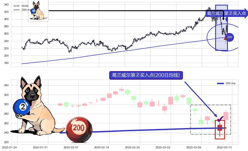 ⚀ 2020-03-12-日显现 葛兰威尔均线 200日均线 第②买入点 上升趋势的中继信号,后市看涨,买进信号