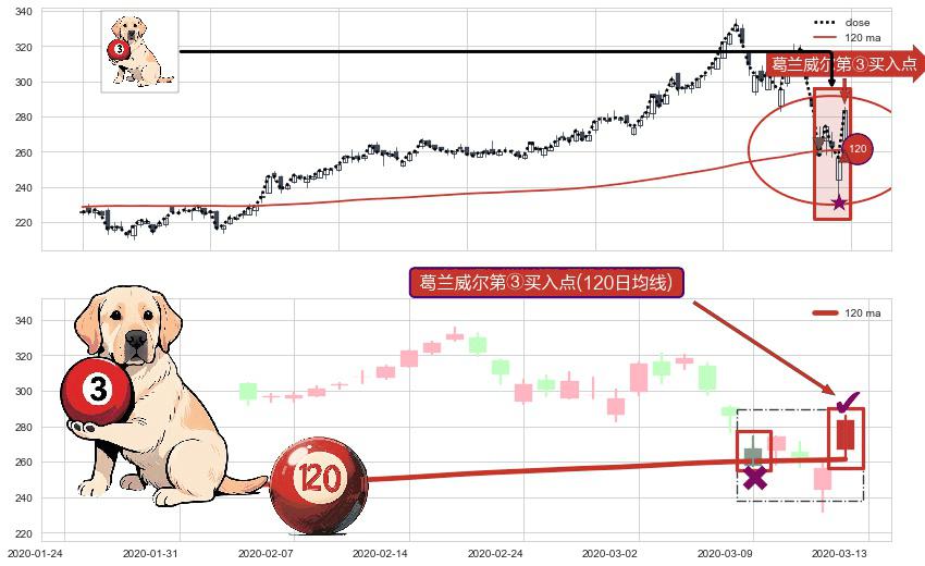 ⚀ 2020-03-13-日显现 葛兰威尔均线 120日均线 第③买入点 上升趋势的中继信号,后市看涨,买进信号
