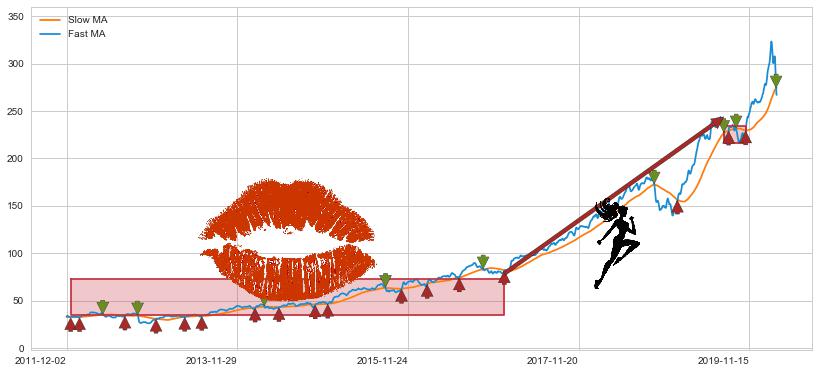 2011-12-20至2017-01-09 慢线与快线多次接触,存在上下穿越,有缠绕