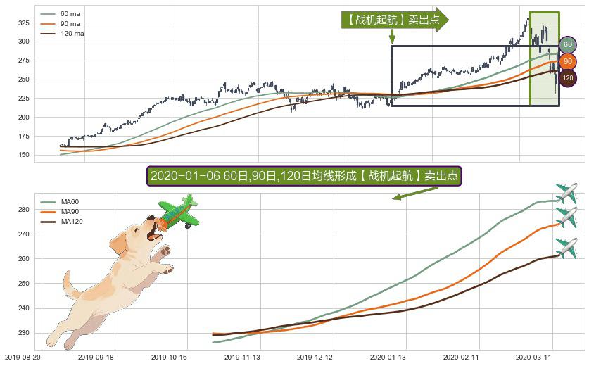 ⚀ 2019-10-25日-2020-03-13日显现 60日-90日-120日均线 【战机起航】卖出点 看空信号,后市看跌,卖出