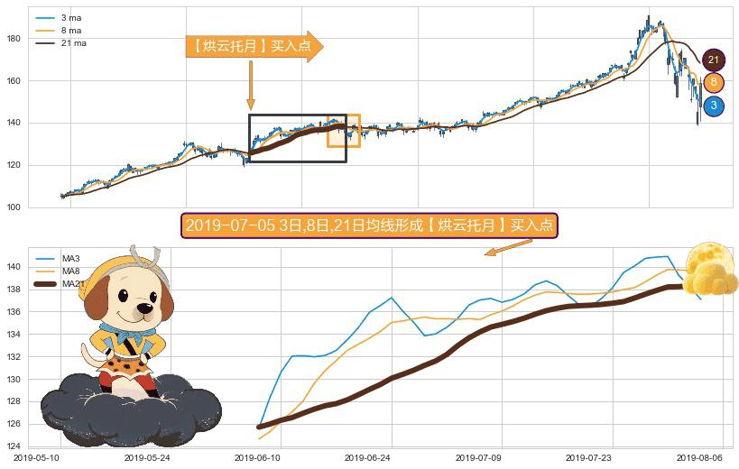 ⚀ 2019-06-06日-2019-08-02日显现 3日-8日-21日均线 【烘云托月】买入点 看多信号,后市看涨,买入