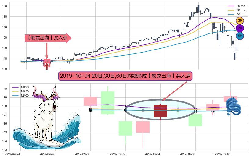 ⚀ 2019-10-04日显现 20日-30日-60日均线 【蛟龙出海】买入点 看多信号,后市看涨,买入