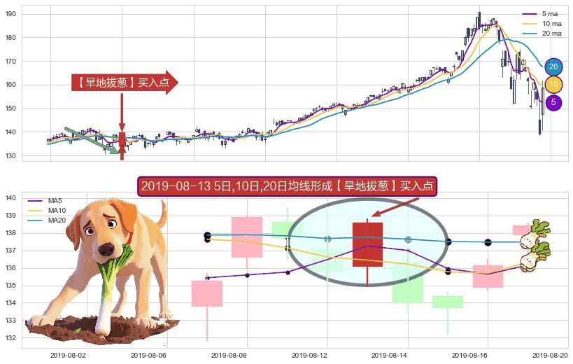 ⚀ 2019-08-13日显现 5日-10日-20日均线 【旱地拔葱】买入点 看多信号,后市看涨,买入