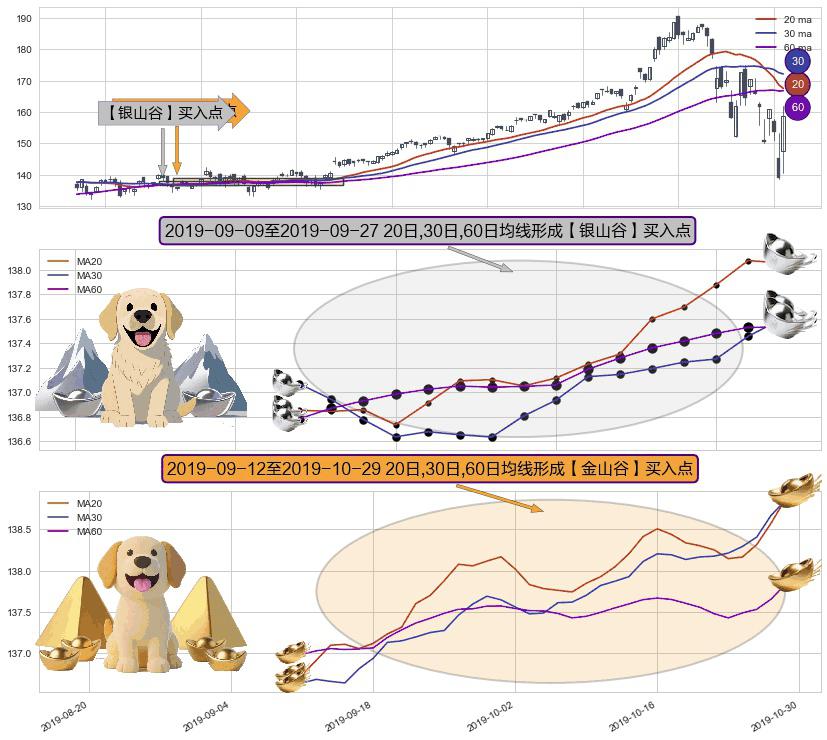 ⚀ 2019-09-13-日至2019-10-29-日显现 20日-30日-60日均线 【金山谷】买入点 其再次确认了买入信号,可靠性更强,买入