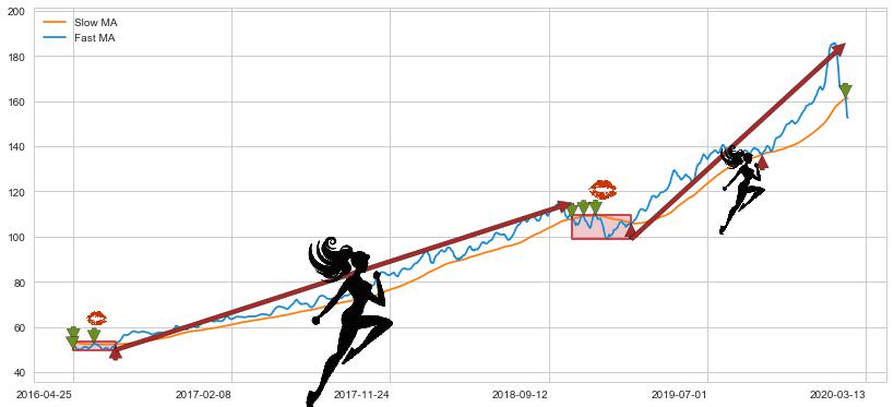 2016-04-26至2016-07-12 慢线与快线多次接触,存在上下穿越,有缠绕