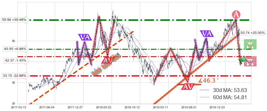 ♘ 阻力价格位45.95,可信任强度62.16%,距离最后交易2020-03-13形成的收盘价格42.99相差 +6.88%