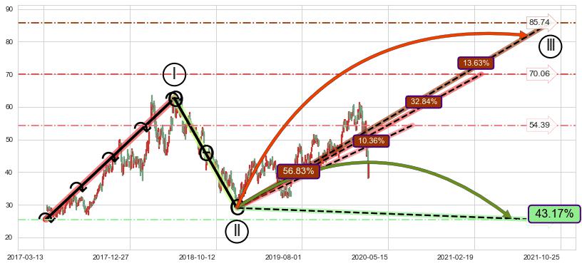 ➢ 大趋势走坏(跌破5浪起点位置)概率43.17%