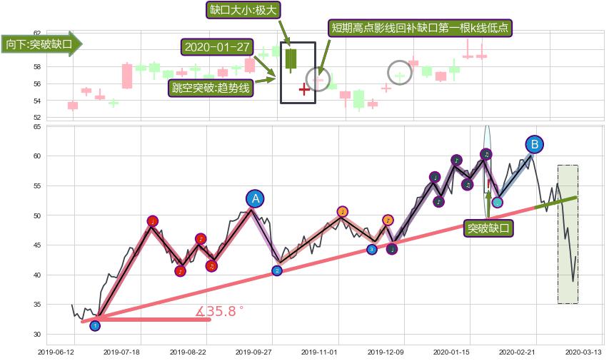 ✂️ 2019-06-17-2020-02-21上升趋势存在反转[风险],其原上升趋势的支撑位(52.96)已破位[强阻力信号],原上升趋势角度: 35.8˚