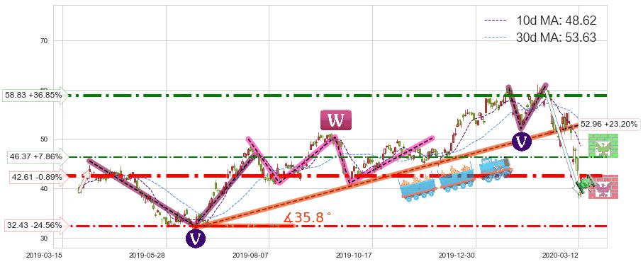 ♘ 阻力价格位46.37,可信任强度40.66%,距离最后交易2020-03-13形成的收盘价格42.99相差 +7.86%