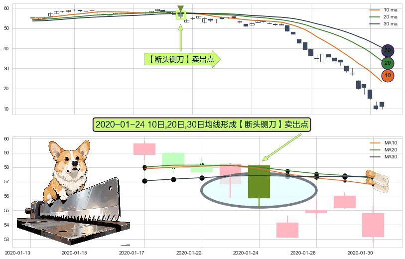 形态多维评估: ⚀ 2020-01-24日显现 10日-20日-30日均线 【断头铡刀】卖出点 看空信号,后市看跌,卖出