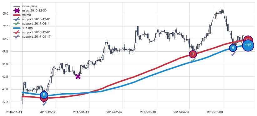 上涨趋势2016-11-11-2017-05-25,均线115, 95确认关键支撑3处