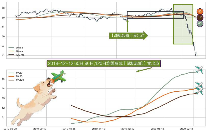 形态多维评估: ⚀ 2019-10-11日-2020-02-13日显现 60日-90日-120日均线 【战机起航】卖出点 看空信号,后市看跌,卖出