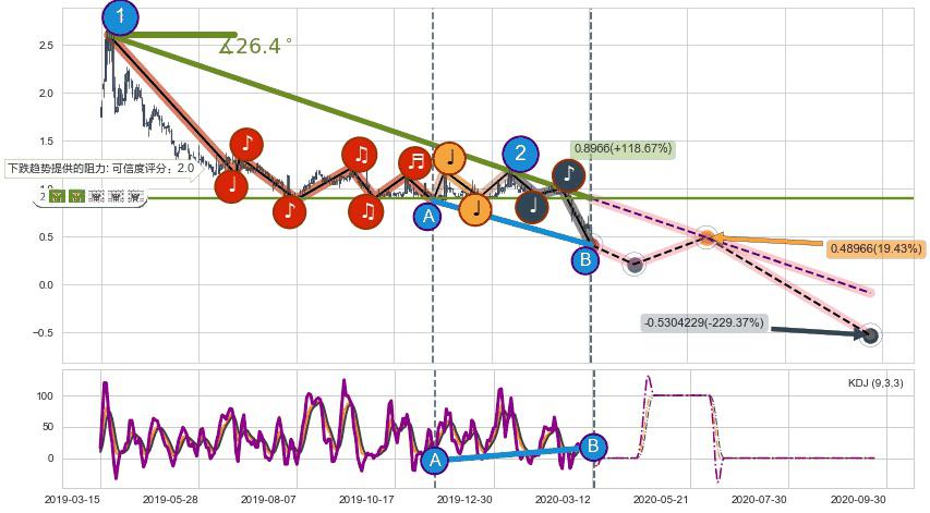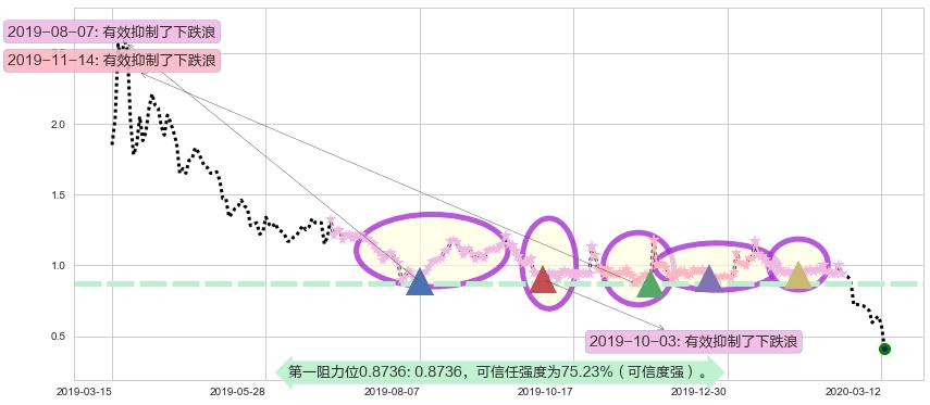 ♘ 在最后的下跌阶段2019-03-21至2020-03-13,存在 持续未破位的阻力位 ,阻力价格0.8966,可信任强度64.02%,其距离最后价格0.41000相差 +118.67%