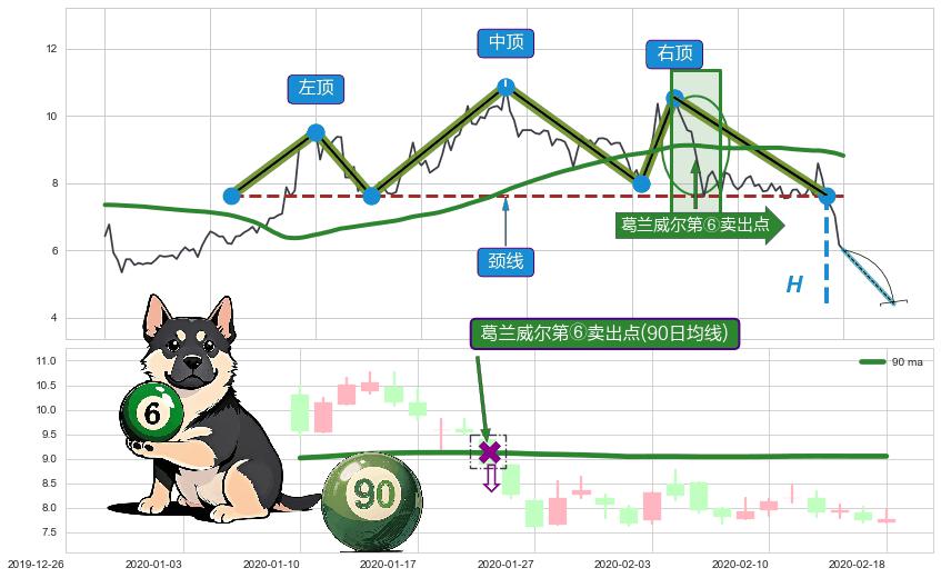 ➢ 【卖1】: 激进型 卖点→(2020-03-09: 7.64 )形成突破三重顶【反转】形态