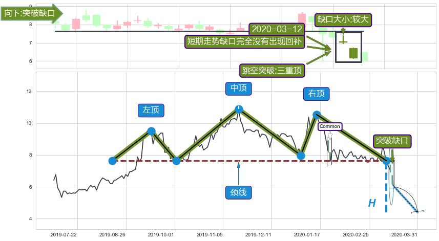 ➢ 2020-03-12形成:向下跳空【突破】缺口