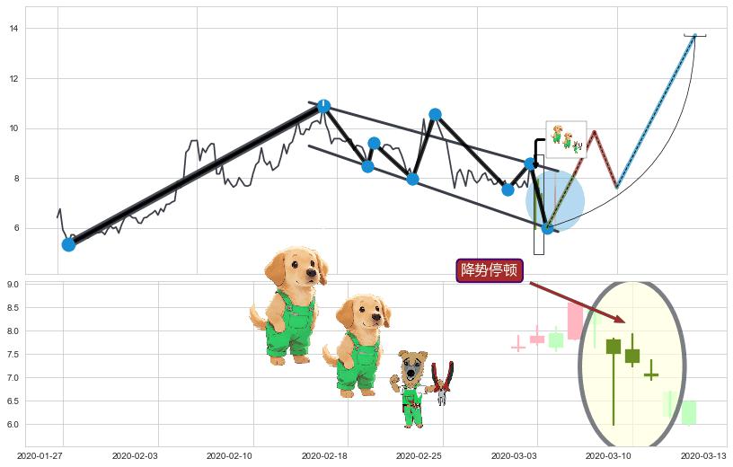 | 6 🅚:三只乌鸦 ➕ 📐:三重顶下行突破支撑位破位, 猜想持续下沉下跌,被突破的支撑位已变为阻力位 ☞ 看空信号 ⇥ 【🅚线】交织【图形】⇥ 综合量化分数: 43 | > |
