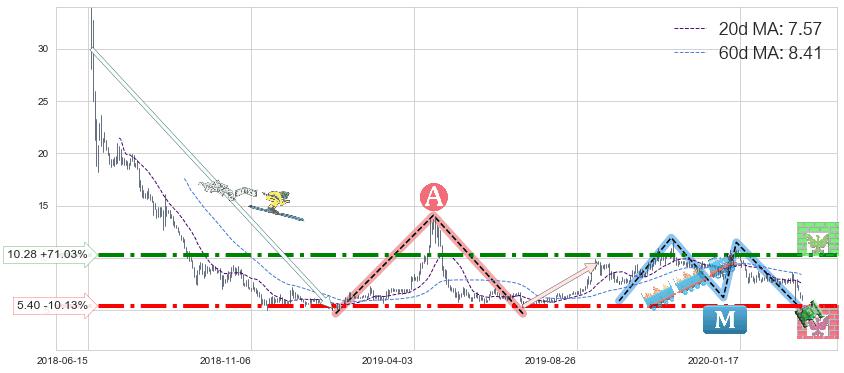 ♘ 阻力价格位10.28,可信任强度84.59%,距离最后交易2020-03-13形成的收盘价格6.01相差 +71.03%