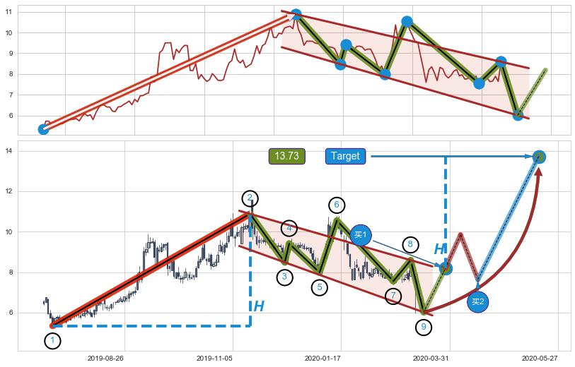 ➣ 最小中继整理涨幅→𝐇: 5.54 (𝐇旗杆的长度:旗杆起点→顶点)