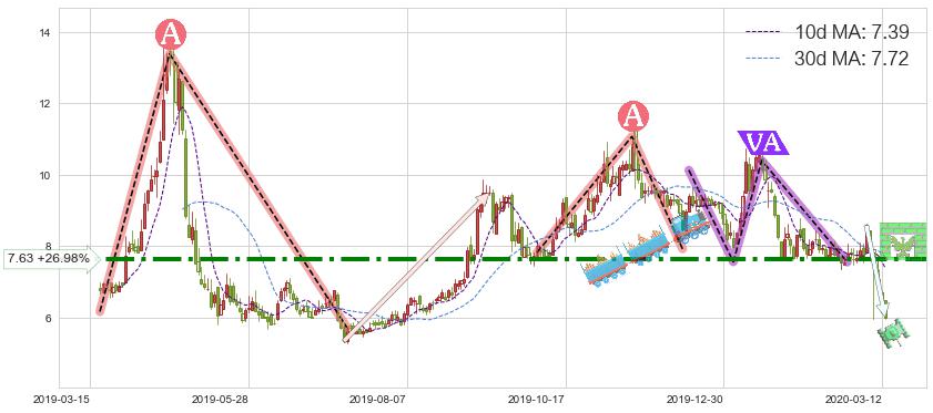2020-02-06: 第一阻力位7.63有效抑制了下跌浪,成功阻止了价格的继续下跌。