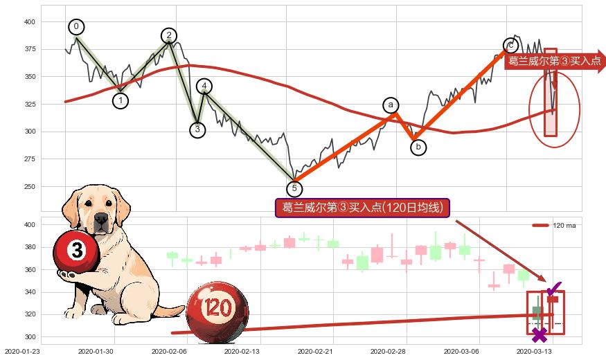 ➢ 收盘价(2020-03-04: 383.79 )→再次回踩→第一根k线低点(2020-02-21: 377.90 )