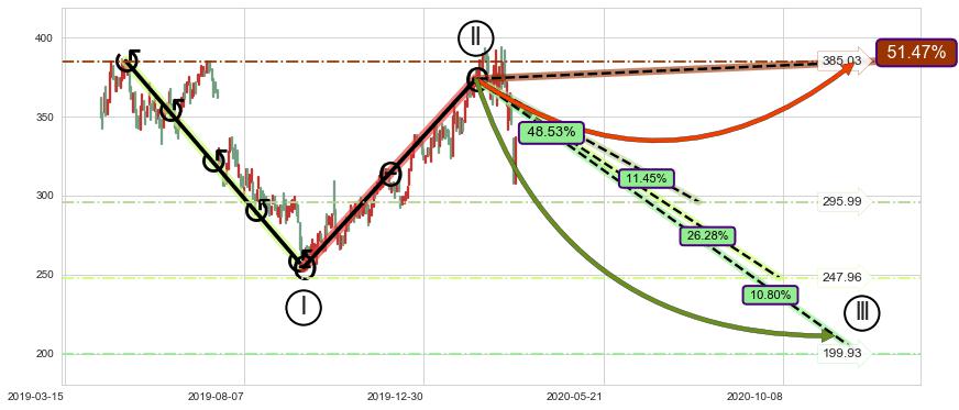 ➢ AI预测: 假定反转如期而至,第❸价格目标位置(2020-04-27, 387.78)