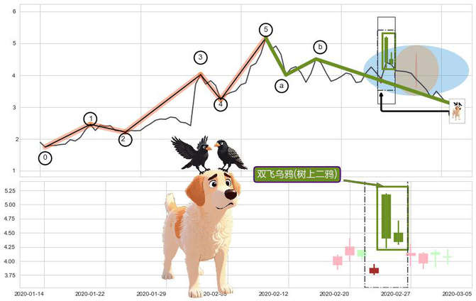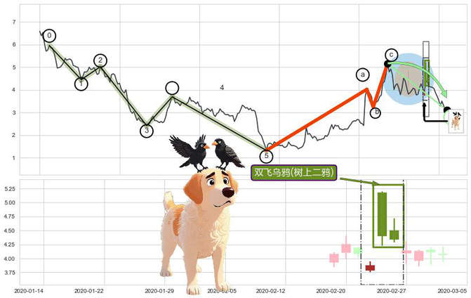 ➢ 🐸 双飞乌鸦(树上二鸦)形态方向: 消极反向形态,对未来预期 看空