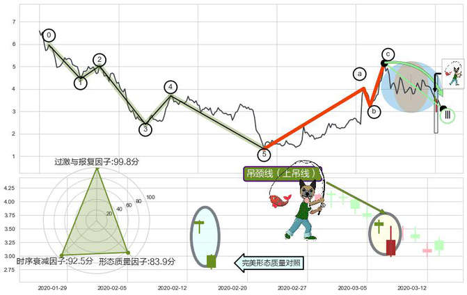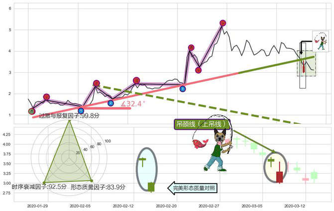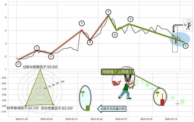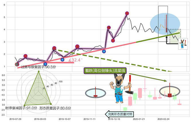 ➢ 🕰 价格走势在2020-03-06至2020-03-09期间形成吊颈线(上吊线),残存影响值:-4.78