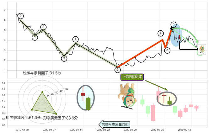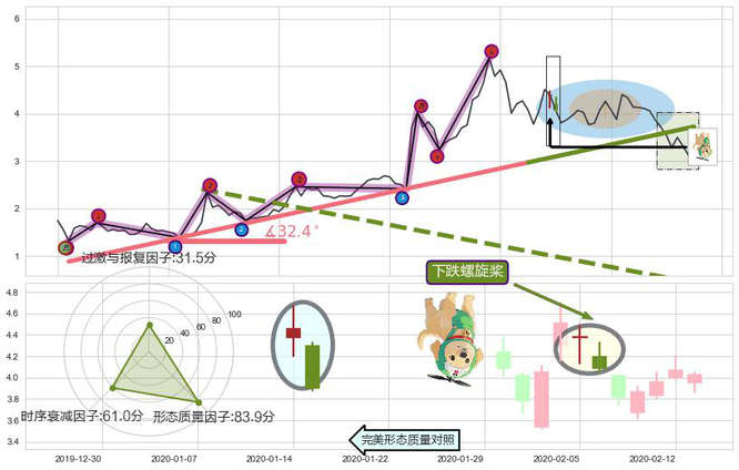 ➣ 下跌螺旋桨 + 趋势线支撑位已破位下跌信号叠加后【反向回撤率】偏高,【看空】信号叠加【存续影响降权】