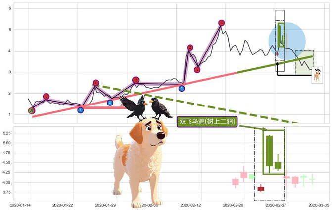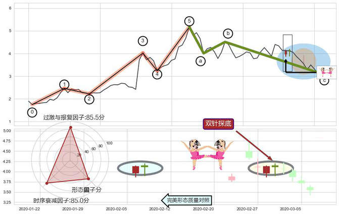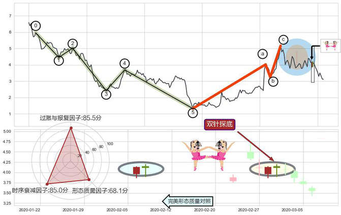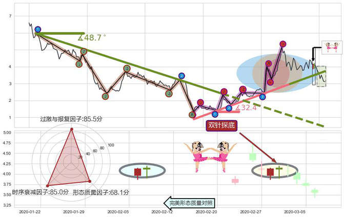 ➢ 🕰 价格走势在2020-02-28至2020-03-02期间形成双针探底,残存影响值:4.77