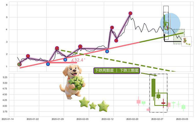 ➢ 🕰 价格走势在2020-02-25至2020-02-27期间形成下跌两颗星 | 下跌三颗星,残存影响值:-8.33