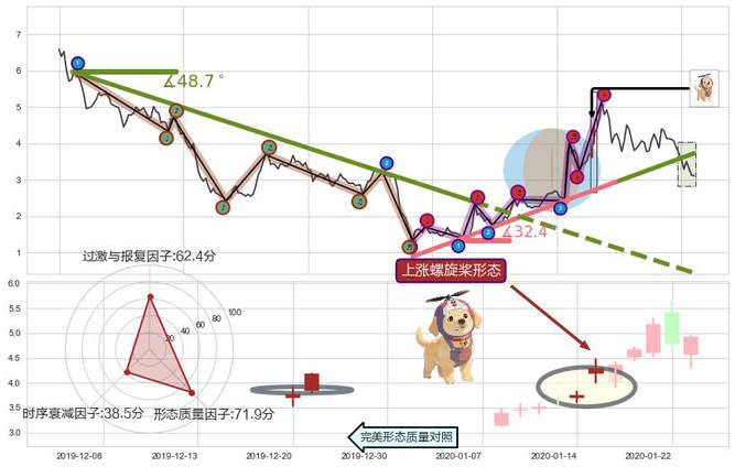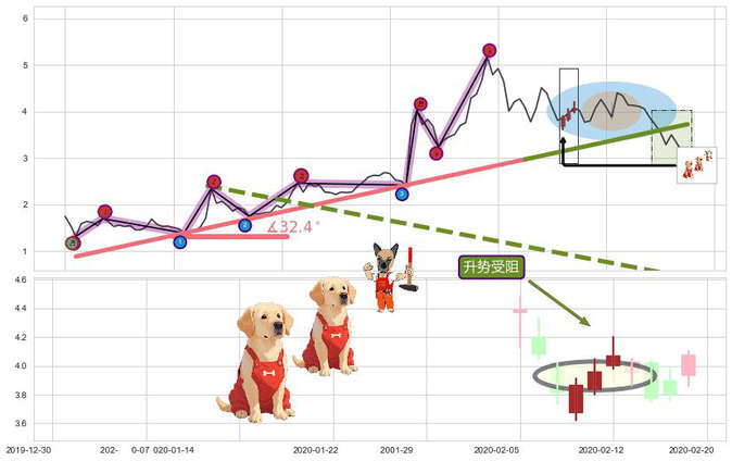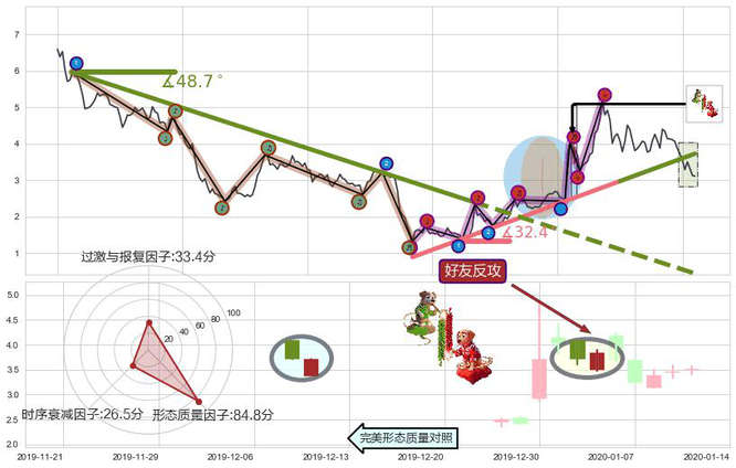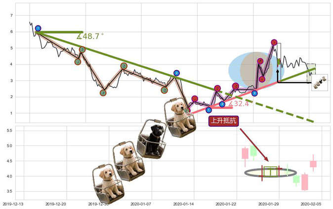 ➣ 2019-10-01-2020-01-30上升趋势存在反转[风险],其原上升趋势的支撑位(3.726)已破位[强阻力信号],原上升趋势角度: 32.4˚
