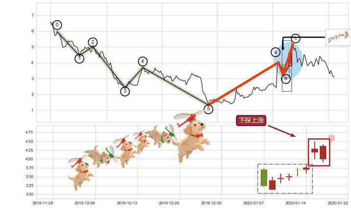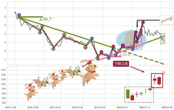 ➢ 🕰 价格走势在2020-01-07至2020-01-16期间形成下探上涨,残存影响值:4.57
