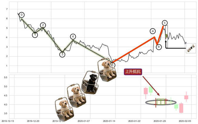 ➢ 波浪理论:猜想达到c点后小回调终止反转上涨 → 上涨 → 【拐点】临近 → 阶段均值回复结束后继续大周期趋势跟踪