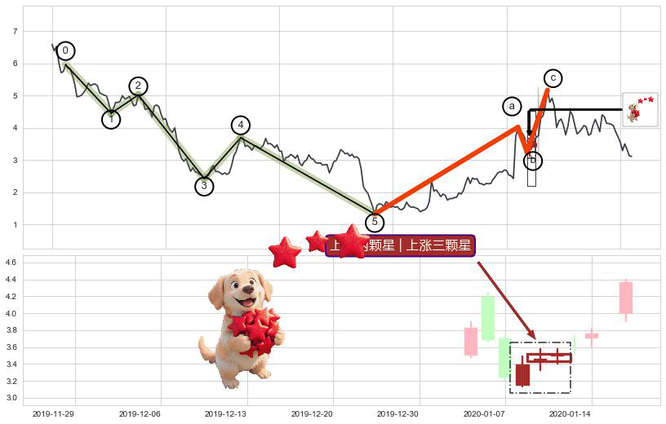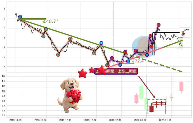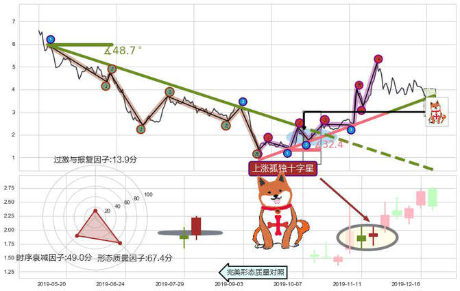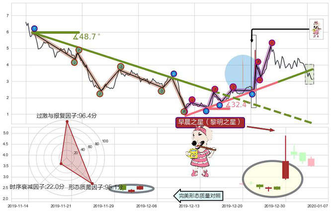 ➢ 🕰 价格走势在2019-12-24至2019-12-30期间形成早晨之星(黎明之星),残存影响值:3.93