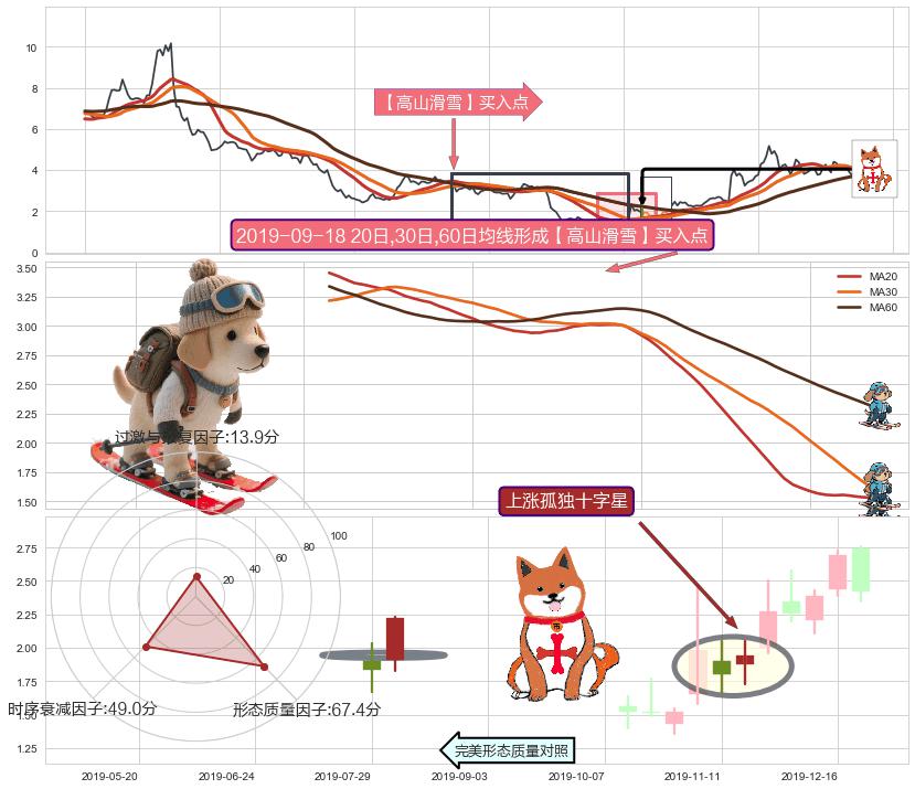 | 2 🅚:上涨孤独十字星 ➕ 🎢:【旱地拔葱】买入点均线组合买入点信号形成后,猜想后续向上脱离整理形态,持续突破上升 ☞ 看多信号 ⇥ 【均线】交织【🅚线】⇥ 综合量化分数: 51 | > |