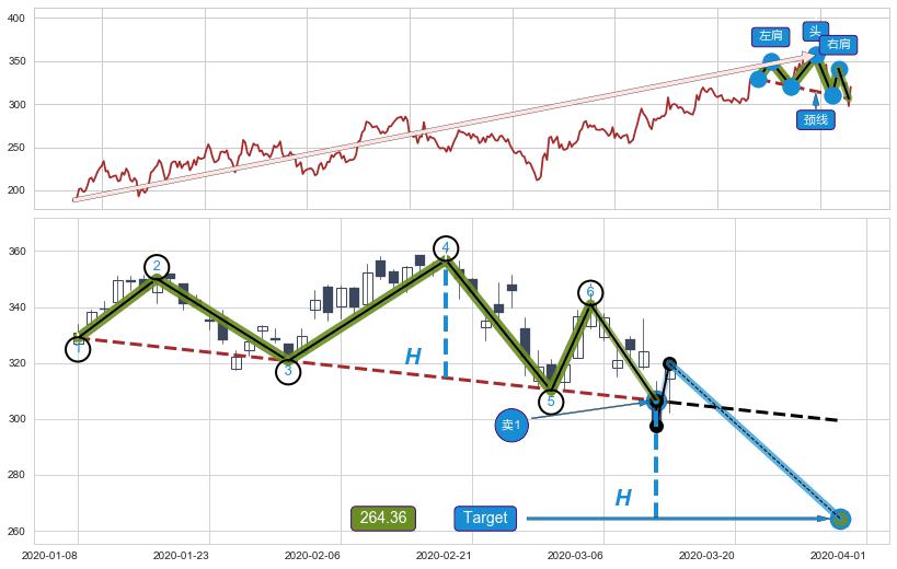 ➢ 【卖1】: 激进型 卖点→(2020-03-12: 306.49 )形成突破头肩顶【反转】形态