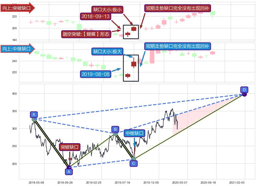 ➢ 跳空突破【蝴蝶】形态关键点后,后续非关键走势也无缺口回补迹象,突破缺口可信度提高