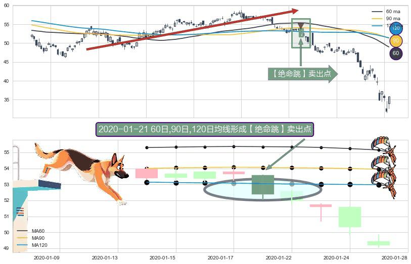 ⚀ 2020-01-21日显现 60日-90日-120日均线 【绝命跳】卖出点 看空信号,后市看跌,卖出