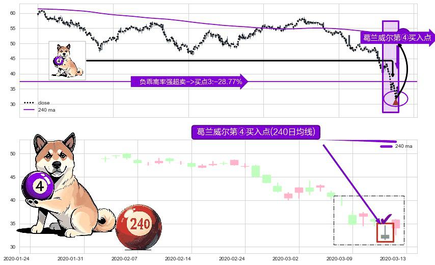 ⚀ 2020-03-12-日显现 葛兰威尔均线 240日均线 第④买入点 下降趋势均值回复的短线反弹信号,后市看涨,买进信号