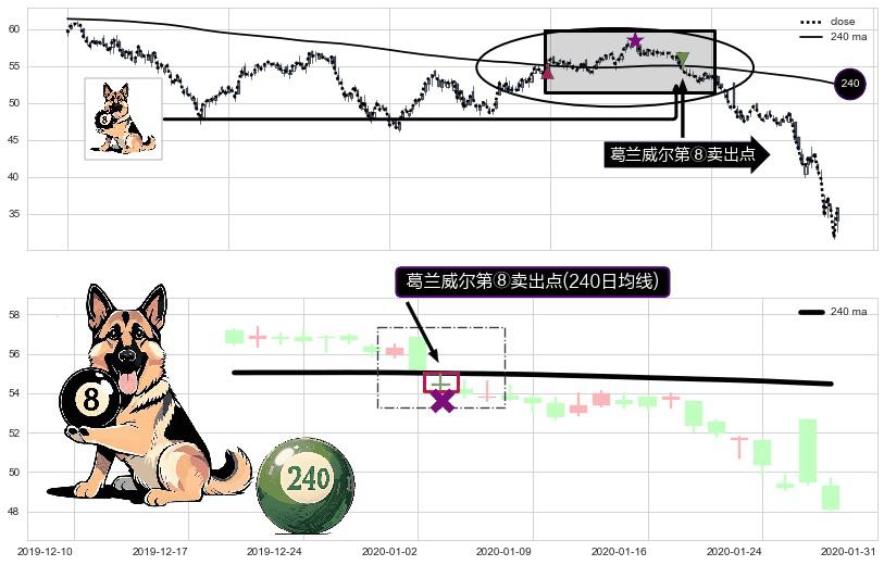 ⚀ 2020-01-03-日显现 葛兰威尔均线 240日均线 第⑧卖出点 下降趋势的中继信号,后市看跌,卖出信号