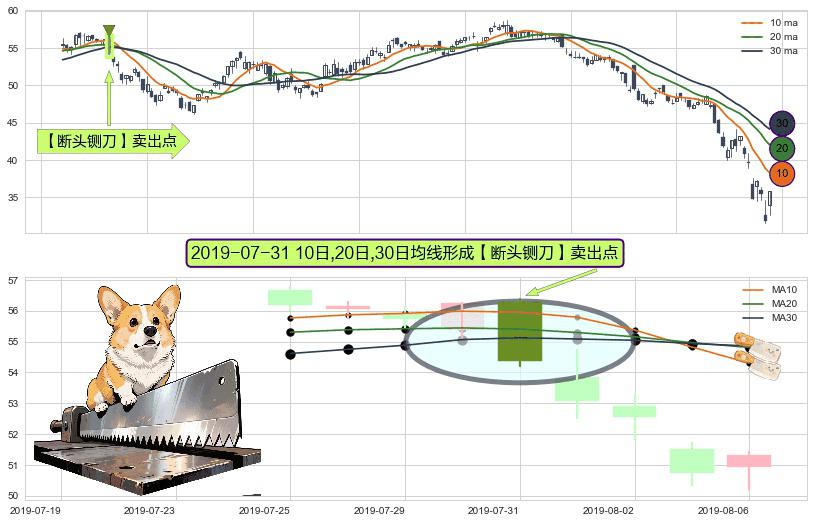 ⚀ 2019-07-31日显现 10日-20日-30日均线 【断头铡刀】卖出点 看空信号,后市看跌,卖出