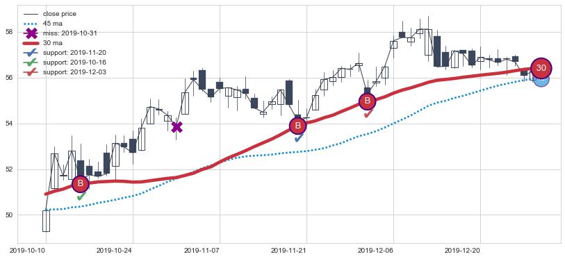 ⚂ 2019-11-01-日均线向上突破,2020-01-03-日重新下穿均线破位,均线阻力再次生效
