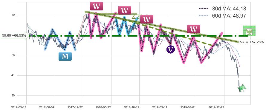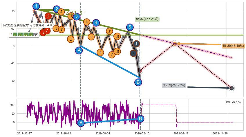 ♘ 阻力价格位59.69,可信任强度99.00%,距离最后交易2020-03-13形成的收盘价格35.84相差 +66.53%