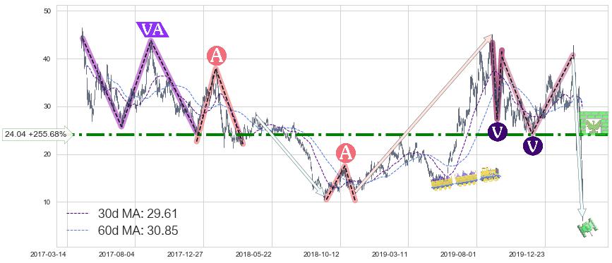 ♘ 阻力价格位24.04,可信任强度81.36%,距离最后交易2020-03-13形成的收盘价格6.76相差 +255.68%