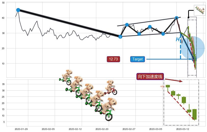 ➢ 【已达成】最小【整理】第一目标价格→(2020-03-12: 12.73 ), 后续继续【整理】下跌动力依然存在,下跌空间适中
