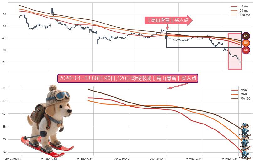 形态多维评估: ⚀ 2019-11-08日-2020-03-13日显现 60日-90日-120日均线 【高山滑雪】买入点 看多信号,后市看涨,买入