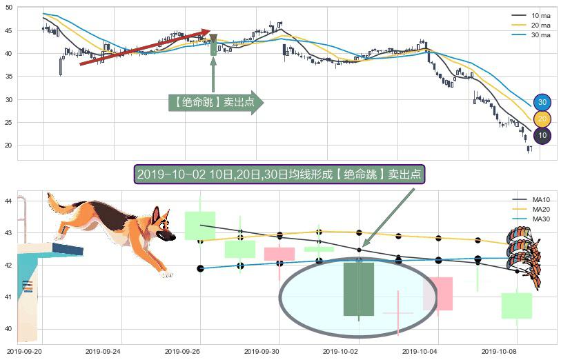 形态多维评估: ⚀ 2019-10-02日显现 10日-20日-30日均线 【绝命跳】卖出点 看空信号,后市看跌,卖出