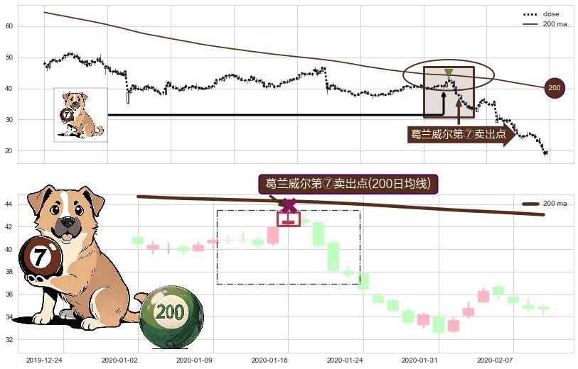 形态多维评估: ⚀ 2020-01-16-日显现 葛兰威尔均线 200日均线 第⑦卖出点 下降趋势的中继信号,后市看跌,卖出信号