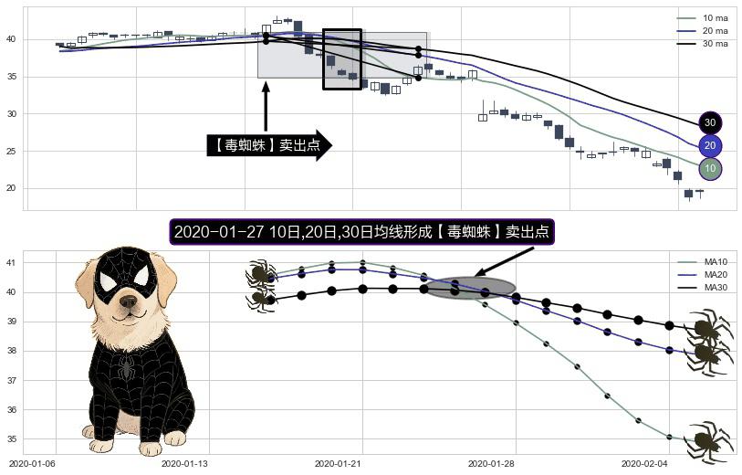 形态多维评估: ⚀ 2020-01-27日显现 10日-20日-30日均线 【毒蜘蛛】卖出点 看空信号,后市看跌,卖出
